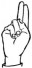 На ћирилици написано НИКОДИЈЕ ПЕТРОВИЋ састоји се из 16 слова [?]. Исписано ћириличном једноручном азбуком за глувонеме: